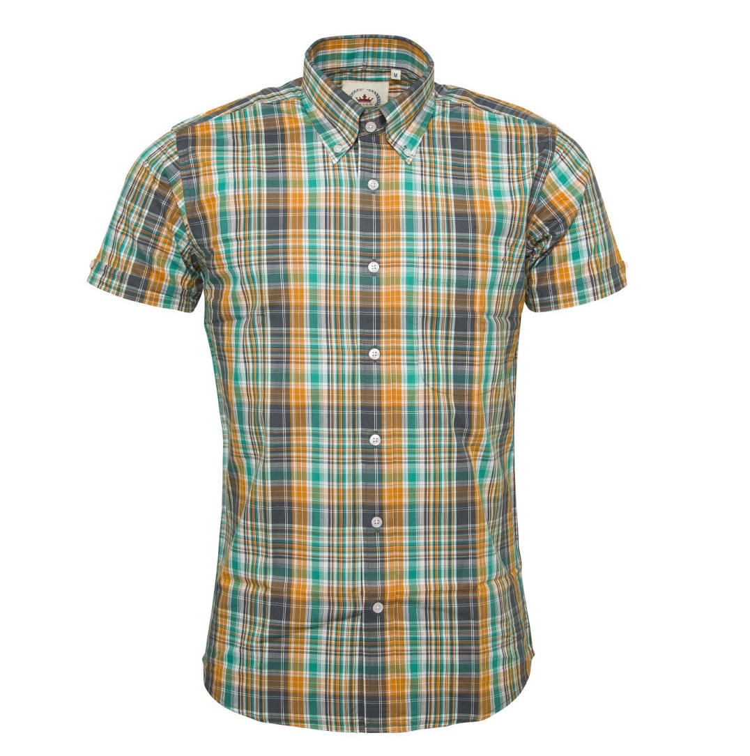 Klassisches Karohemd von Relco in kurzarm mit Button Down Kragen. Ein kleiner Knopf befindet sich rückseitig am Kragen. In der Mitte des Rückens mit Kellerfalte und ein kleiner Knopf befindet sich am Ärmel.